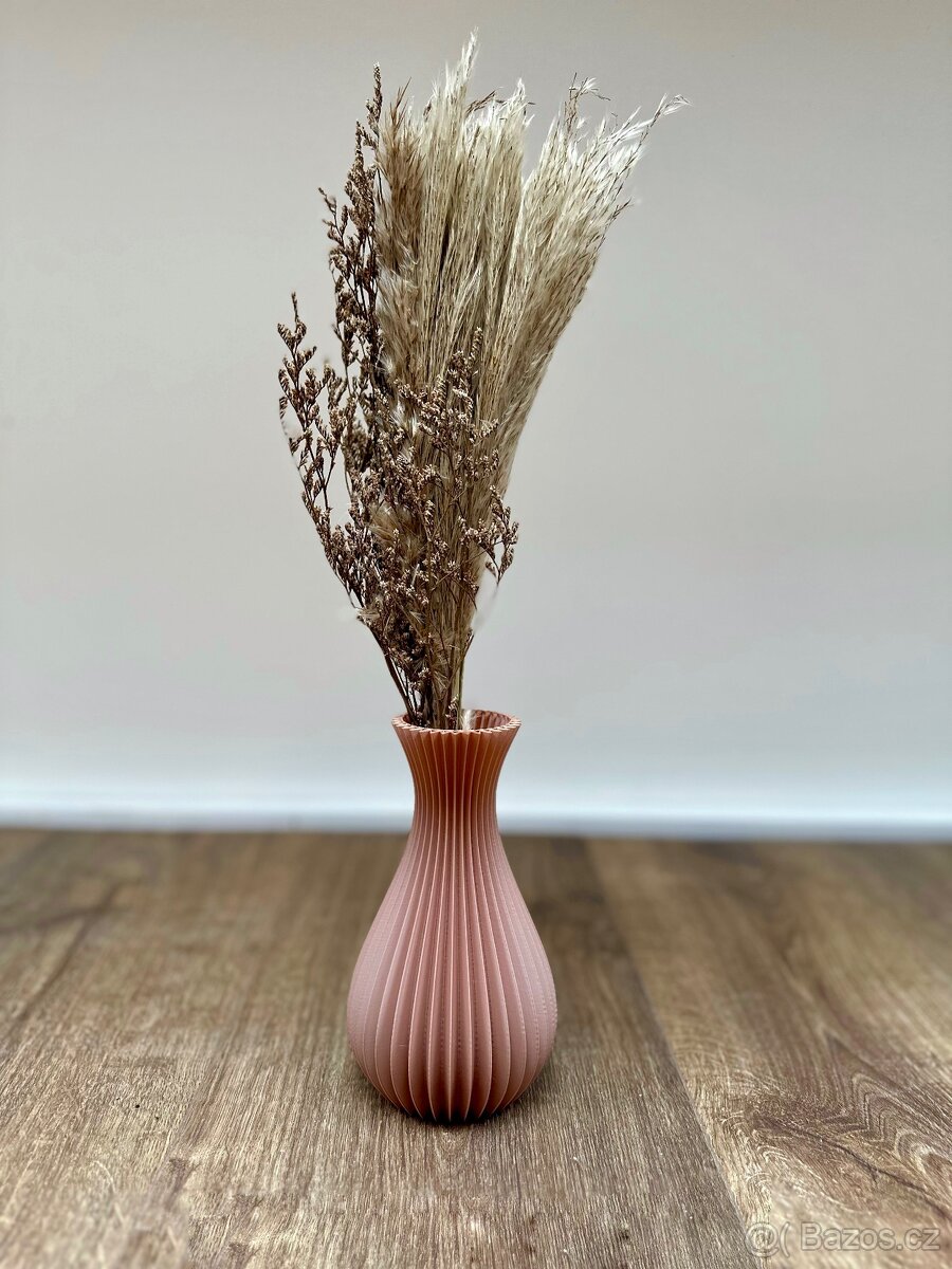Krásný doplněk nasvatbu, narozeniny i do vašeho domova. Váza je lehká, vyrobena v 3D tiskárně. Rozměry: výška 160 mm, průměr 93 mm. Materiál: PLA Údržba: Doporučujeme pro sušené dekorace. Skladem 60 kusů