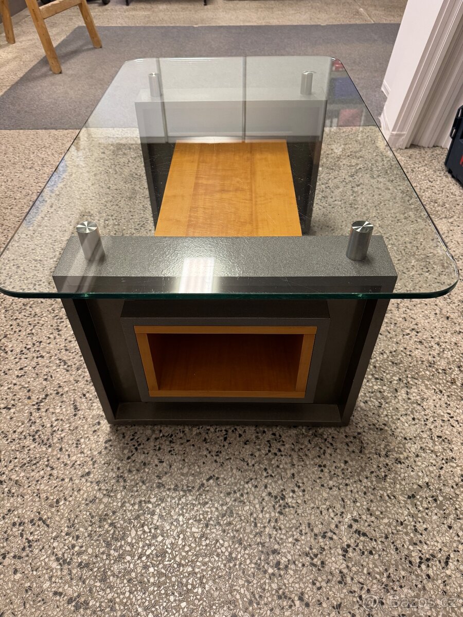 Nabízím pěkný konferenční stolek. Kombinace dýha - sklo.Rozměry 100x60 cm, v.47 cm. Masivní a stabilmí.