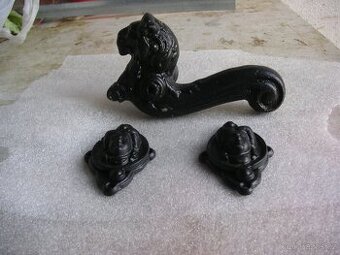 Prodám litinovou dveřní kliku, včetně dvou litinových ozdob dveří. Vhodné ke kovovým vratům. V případě zájmu volejte t.č.603303131