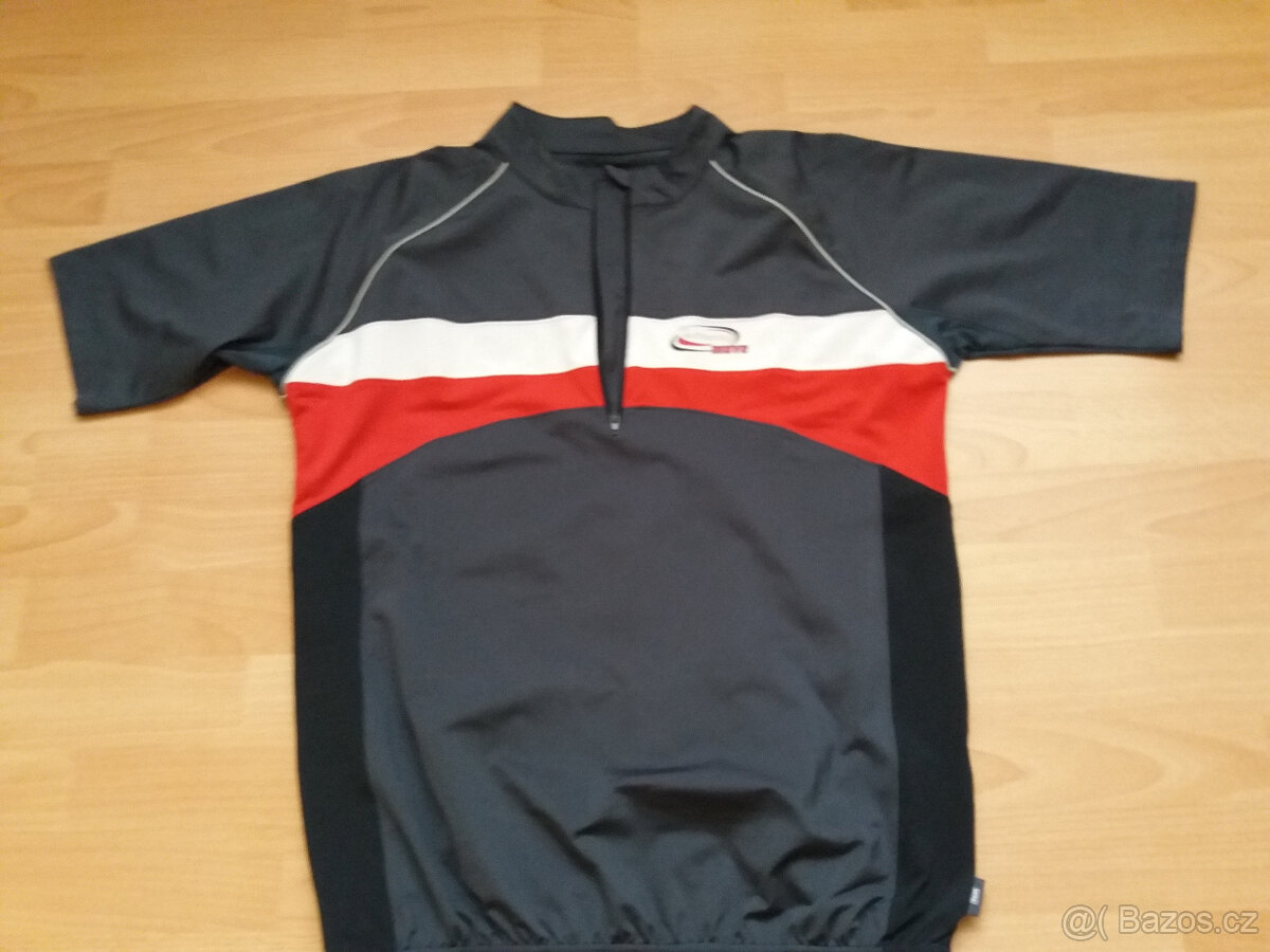 Prodám : cyklistický dres triko s krátkým rukávem, vel.L, nepoškozené, jen 1x použité, nyní je malé. Barva : šedočerná + červený a bílý pruh + reflexní prvky. Cena : 160,- Kč