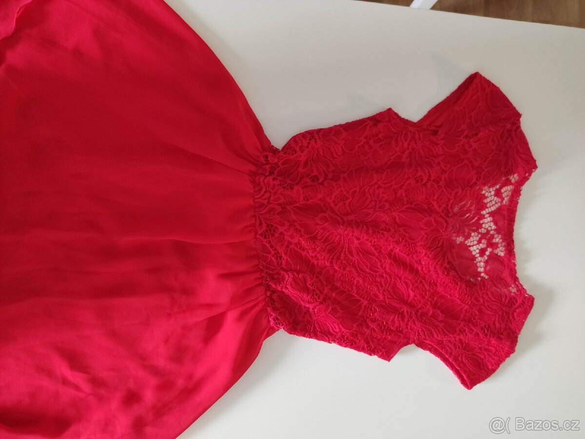 Prodám červené dámské šaty, velikost na 11-13 let. V dobrém stavu.( Na fotce jsou moc světle)