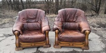 Prodám 2x kožené křeslo s masivním dubovým dřevem. Rozměry: šířka-95cm,výška-94cm. Cena je za kus!!!