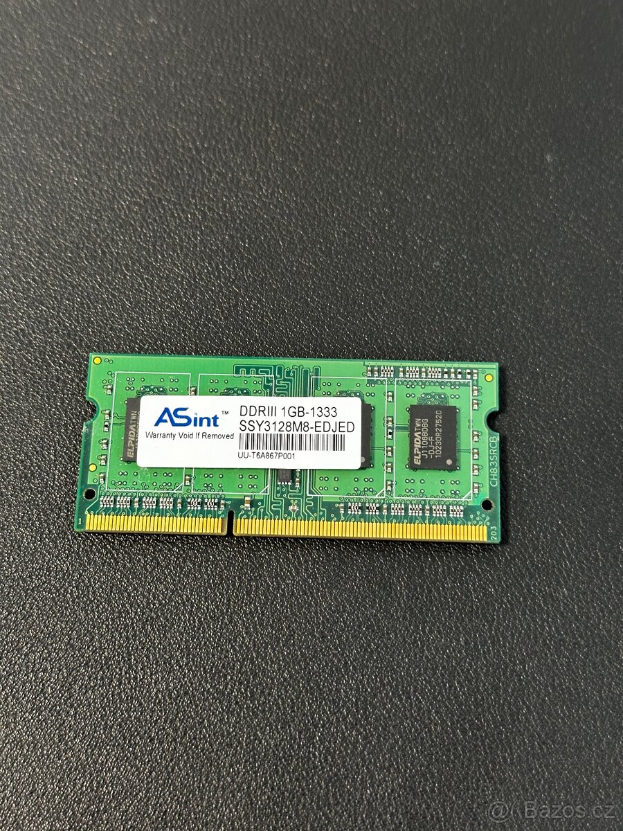 Prodám funkční ramku paměť do notebooku 1GB značky ASint. Voltáž 1,5V. DDR3 so-dimm.