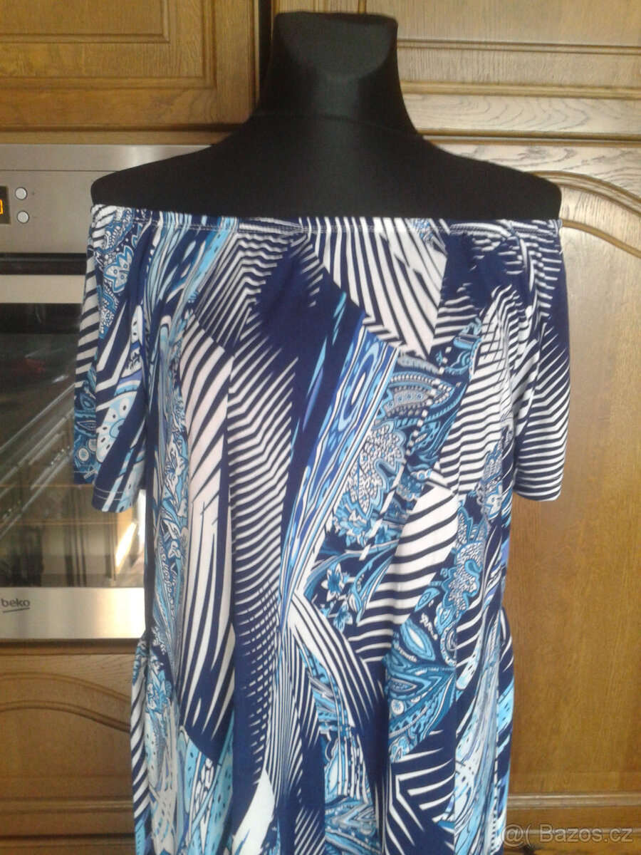 pohodlné domácí- volnočasové šaty,materiál 65% bavlna a 35% polyester kvůli pružnosti,nenošené,vel L-délka 100cm,prsa v klidu 2x 56cm,boky v klidu 2x59cm,vzadu na vázání,cena 100kč,nevyužité,ještě se poddají,jsou nové s visačkou
