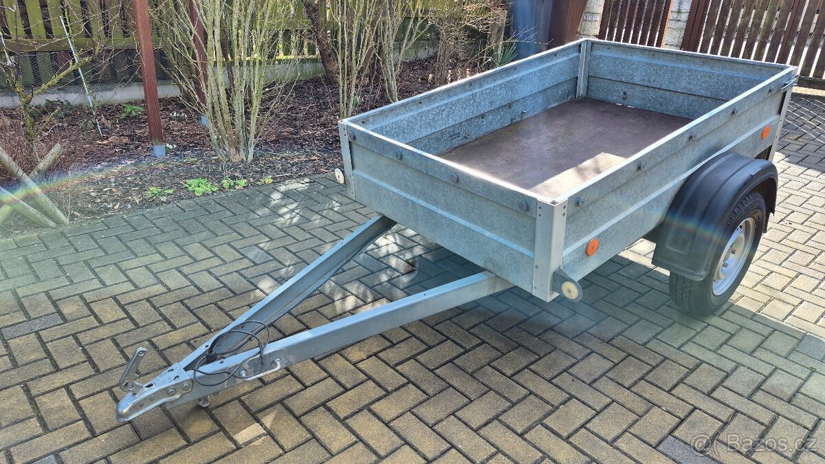 Prodám přívěs o celkové hmotnosti 750 kg v dobré stavu, korba 179x110 cm, 3 roky stará překližková podlaha (ne jako původní OSB), nová STK (do 2/2030), nové zátěžové pneu 155R13C, jen pneu a STK jsou za 3000,- , výměna za větší sklopný