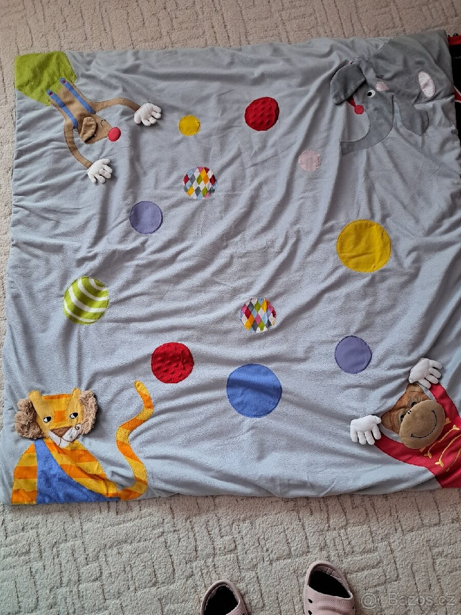 Hrací deka 110x110 cm, zespodu izolace, vhodná jak ven, tak domů. Několik hracích prvků, šustí, píská atd. Neponičená. Zásilkovnu nebo osobní odběr.
