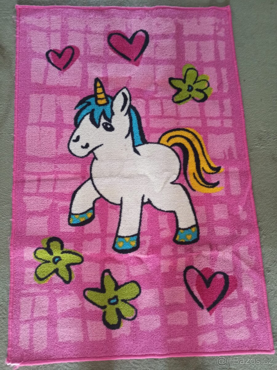 Prodám dětský koberec s jednorožcem. Preferuji osobní odvoz, mohu dovést Pardubice, Chrudim, Havlíčkov Brod, Humpolec, Pelhřimov, Jihlava. Cena: 400 Kč. Bude chtít vytepovat + lem víz foto.