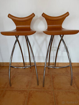 Prodám dvě elegantní barové židle s pevnou dřevěnou opěrkou.Velmi dobrý stav, pouze běžné opotřebení. Cena za obě židle 600Kč Osobní odběr.