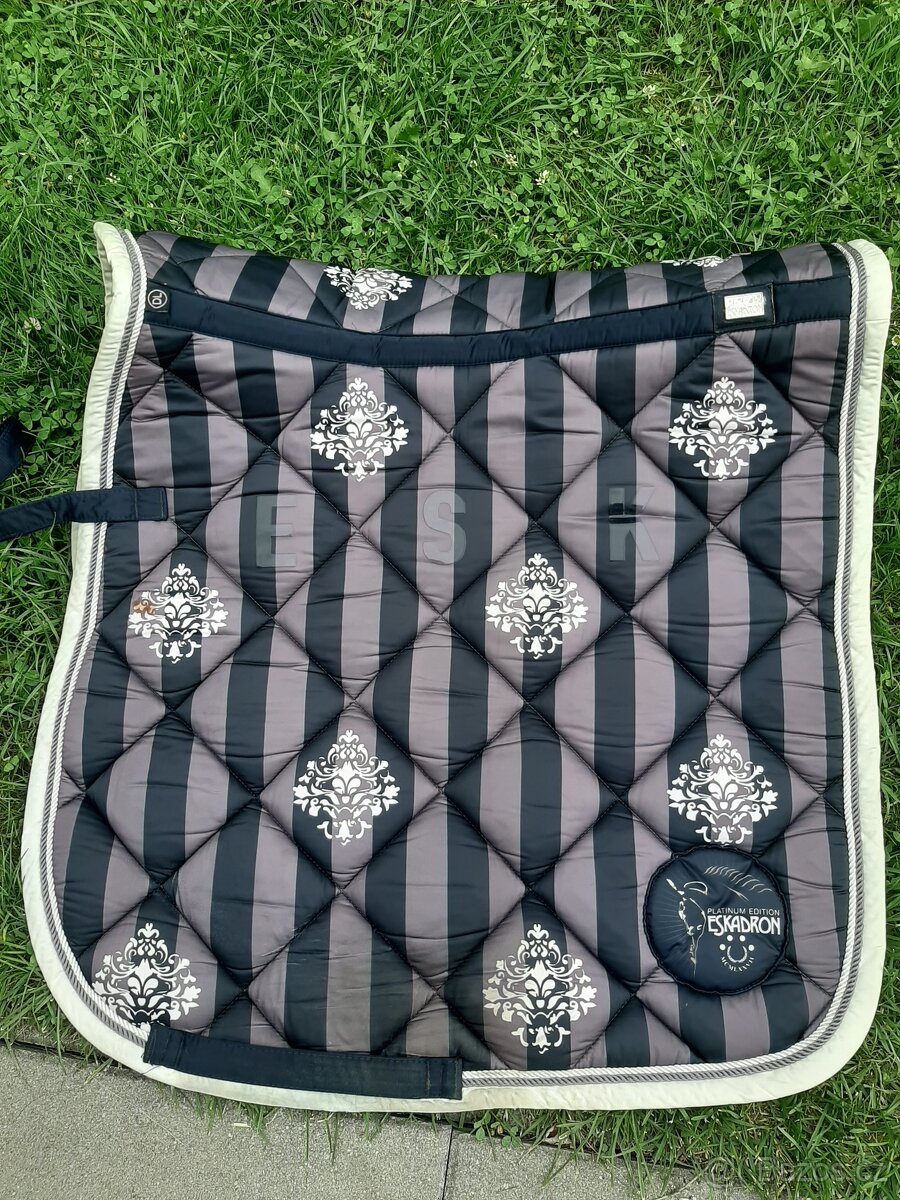 Drezurni podsedlove decky, znacky Eskadron. Elegantni pruhovana cerno- fialovo-hneda. Ma flicek u kohoutku (je pod sedlem). Jinak v poradku a bez poskozeni. Seda Next Generation, s barevnym okrajem. Velmi dobry stav. Seda, stribrna. Velmi pekny stav. 1ks/500,-
