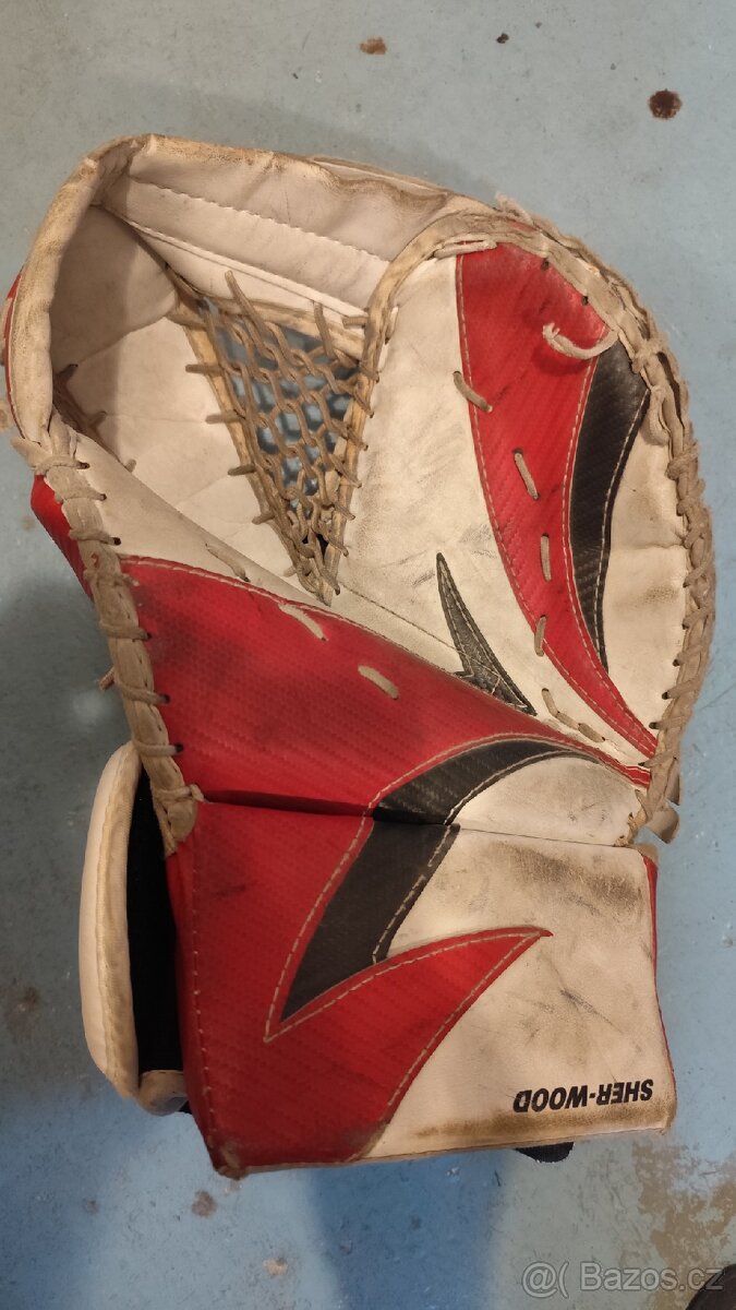 Starší brankářská lapačka s vyrážečkou.