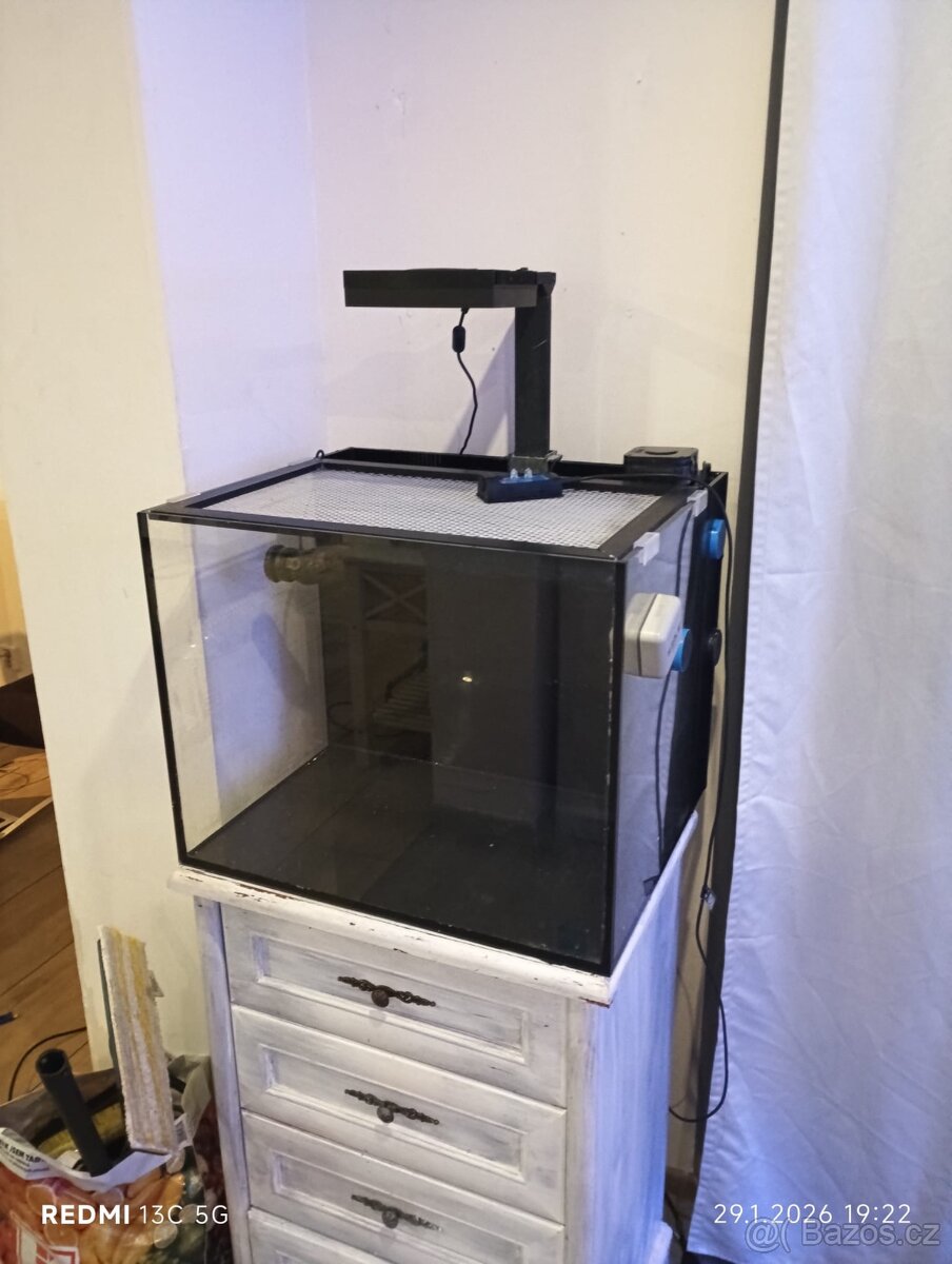 Nuvo 40, filtrace v zádech, 60x48x50, Výbava: Odpěňovač Tunze 9004, výtlak Jebao 2500l/h, 2x proudové čerpadlo Tunze, osvětlení AI Hydra32, štěrka MagFloat. Pouze jako komplet osobně Mírová u Karlových Varů. Prosím kontaktovat na whatsapp