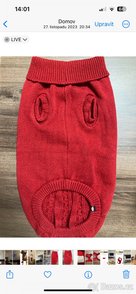 Svetr pro psy. Červený . Věk. L. Použity max 3x.