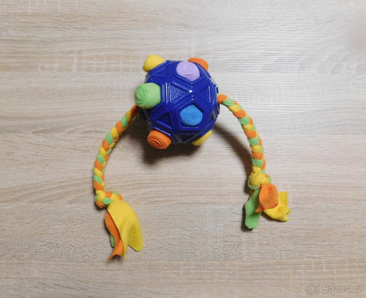 interaktivní míček,průměr 12cm,pro čichací hru,zabavení a trénink.Skvělý míček na hraní.Barevné dlouhé pásky uvnitř míčku,do kterých lze vkládat pamlsky.Pevná TPR guma/odolná,pružná,šetrná k zubům/,barva modrá nebo červená.Nový