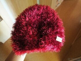 Vínová huňatá čepice je teplá, zakryje uši a je pružná. Délka: 23 cm. Obvod hlavy: 53-58 cm. Pořizovací cena: 500,- Kč.