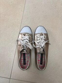 Dámské boty, French Connection, vel.38, gumová podrážka, nízké, zlatá barva a bílá špička. Bez vady. Neprošlapaná stélka. Dobrý stav.