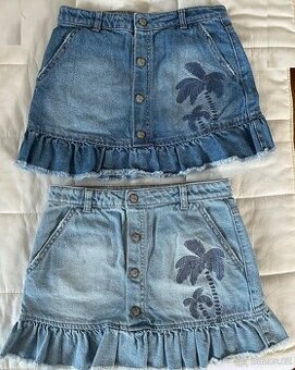 Prodám dívčí riflovou sukni zn. Mayoral vel. 9/134, s výšivkou palmy. Délka: bok cca 30 cm, v pase 31 cm, se stahovací gumou na knoflíky. Materiál 100% bavlna. K dispozici 2, světle a tmavo modrá, cena za ks. PC 690