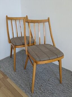 Prodám 4 krásné retro židle, Antonín Šuman, původní čalounění, ale neroztrhané, vytepované. Stav dřeva perfektní, jsou dotažené , takže žádné vrklání. Pouze osobní předání na Budějovické. Cena za set. #vintage #brusel