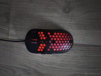 svítící herní myš slabě svítící červená barva možnost měnění DPI přepínače krok zpět a krok dopředu