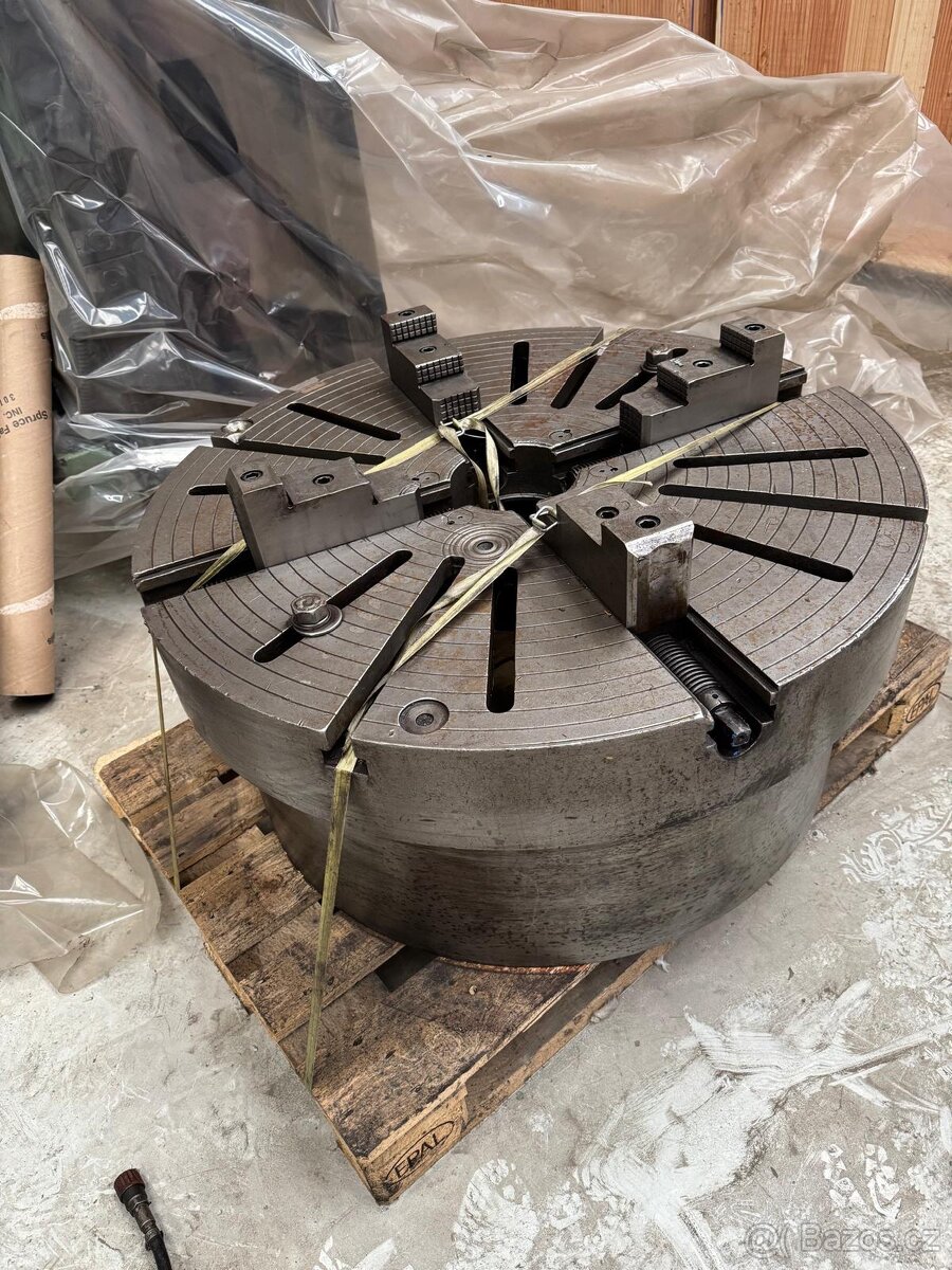 Cena: Dohodou. Prodám upínací desku o průměru 1000 mm, celkové výšce 450 mm, výška upínací části 150 mm. Lze použít i jako lícní desku, celková váha 1400 kg. Deska se používala místo vrtacího stolu u radiální vrtačky.