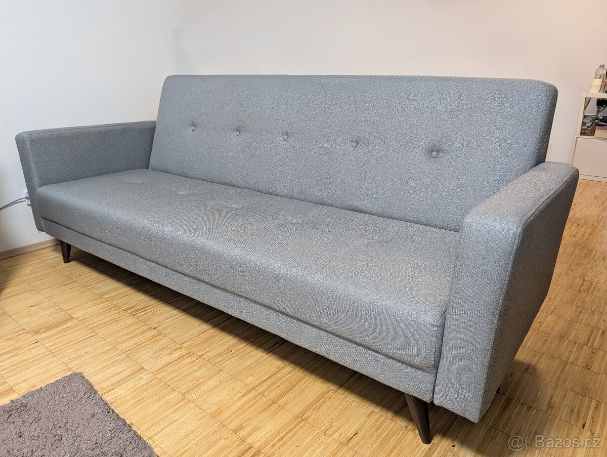 Predám šedú pohovku kupovanú na Bonami. Rozložiteľná na dvojlôžko 120cm. Výborný stav, bez poškodenia. Pôvodná cena: 15 000 Kč Rozmery (š/v/h): 225/90/95 Nutný osobný odber na Prahe 3