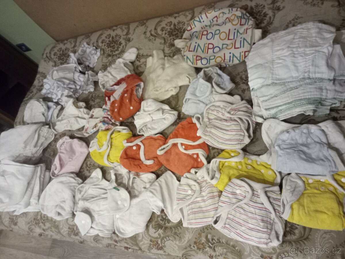 Prodám použitou sadu plen po jednom dítěti. Asi dvanáct vícevrstvých plen, obyčejné látkové pleny, separační pratelné pleny z fleesu, plenKove kalhotky popolini 14x bambulik 1x, svrchní kalhotky 3x a vlněné kalhotky 2x . Osobní odběr, nekontaktovat přes WhatsApp.