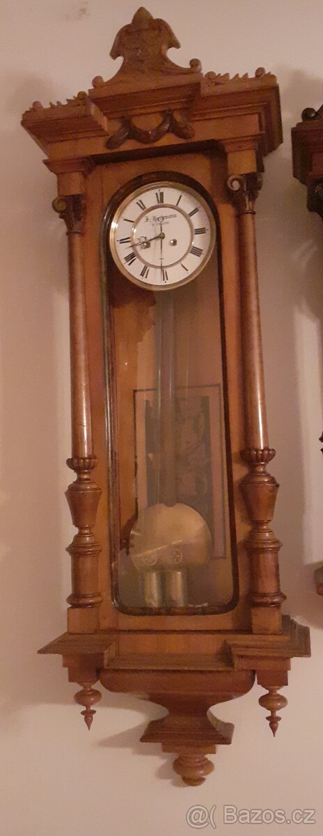 Predam funkcne starozitne dvojzavazove nastenne hodiny