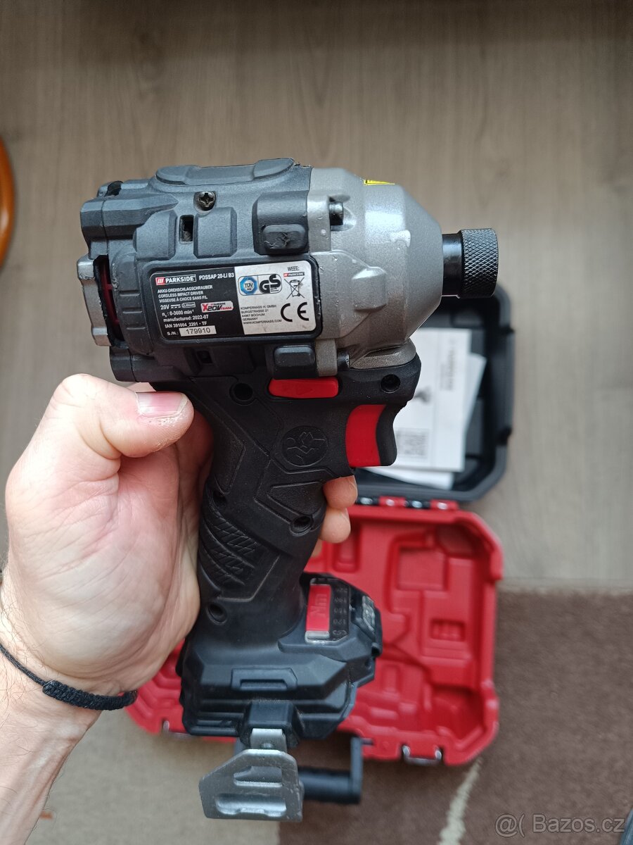 Prodám PARKSIDE PERFORMANCE® Aku rázový utahovák PDSSAP 20-Li B3.Koupeno12/23.Zaruka je na něm 5 let.6 krát sem si sním pomohl u sundání kol auta svého a cosi málo šroubků přišrouboval.