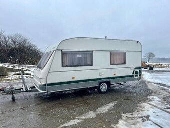 Prodám karavan Chateau Calista 450 Cruise, rok výroby 1999, v dobrém a udržovaném stavu. Ideální pro rodinu nebo pár, který chce pohodlně cestovat. Karavan je celoročně garážovaný. Technické údaje: - délka: 6 500 mm - šířka: 2 250 mm - výška: 2 520 mm - hmotnost: 1 075 kg - maximální hmotnost: 1 300 kg - kapacita: 4 osoby - STK platná do 10/2027 Výbava: - mover – pohodlné parkování bez stresu - celouzavíratelný předstan - nosič na kola - nová lednice - LED osvětlení 12 V - trakční baterie 105 Ah- možnost provozu bez připojení na 230 V (ideální i mimo kempy) - nové pneumatiky - nové disky kol - nová ložiska na nápravě - nové tlumiče - 2× rezervní kolo - kabel na připojení na 230 V Karavan je plně funkční a připravený ihned vyrazit na cesty. V případě zájmu je možnost zaslání více fotografií. Možnost prohlídky po domluvě.