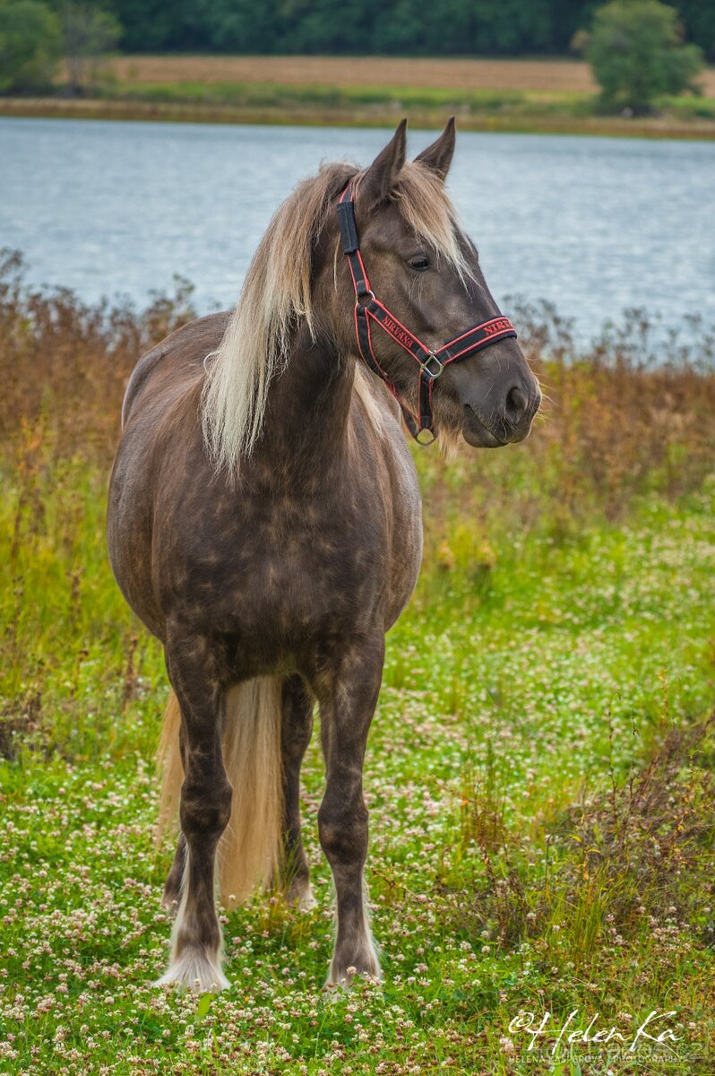 Cena: Dohodou. Gypsian (Bisgaards Nexo + Dietske Ster, holandská plemenná kniha) pouze do špičkových podmínek. Nabízíme k prodeji mladou kobylu plemene Gypsian, v dubnu tříletou. Nyní cca 160 cm a stále roste. Od 11 měsíců věku je systematicky a citlivě připravována v klidném prostředí s důrazem na důvěru, respekt a správný vývoj mladého koně. Má zvládnuté veškeré základy manipulace, pravidelně pracuje ze země a je připravena na obsednutí. Psychicky vyrovnaná, zvyklá na běžný provoz stáje. Ustájena v režimu box / denní výběh ve stádě kobyl. Zvyklá na mycí box, vodu i solárium. Nekovaná, pravidelně strouhaná, u kováře bezproblémová. Je kvalitně krmena, pravidelně doplňována minerálkou s důrazem na správný růst a kondici. Byla připravována s dlouhodobou vizí a není tedy uspěchaná, má prostor dozrát fyzicky i mentálně. Prodáváme ji z rodinných důvodů. Hledáme zkušeného majitele, který ocení kvalitní základ a chce si koně dále formovat podle vlastních představ, případně i pro chovatelské využití. N