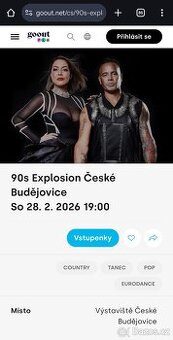 Cena: Nabídněte. Nabízím dva lístky na 90s Explosion do Českých Budějovic. Cenu nabídněte. PC 990 Kč/ks https://90sexplosion.com/90s-explosion-ceske-budejovice-2025/