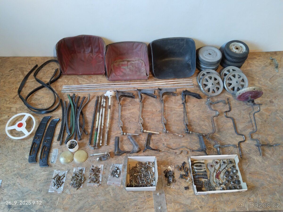 Prodám náhradní díly na šlapací autíčka Moskvič série 1, 2 i 3. Prodej celku!