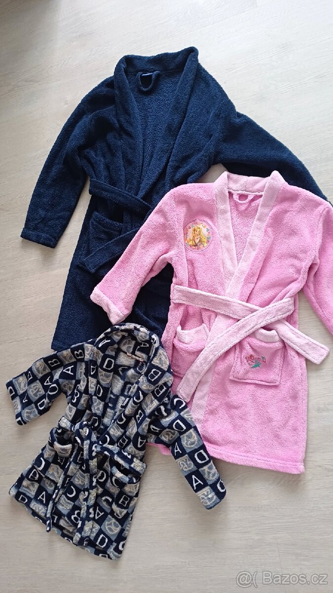 Dětské župany - tmavomodrý zn. Cherokee vel. 7-8let - růžový vel. 6-7let - písmenkový vel.98 - cena za 1kus Posílám přes Balíkovnu, nebo Zásilkovnu.
