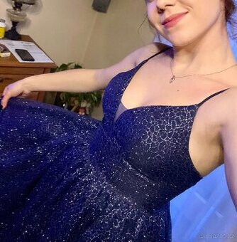 Tmavě modré, princeznovské, plesové, maturitní šaty TŘPYTIVÉ. Šaty mají vyztužený živůtek a bohatou tylovou sukni. Živůtek je na šněrování, takže se krásně přizpůsobí vaší postavě. Jednou nošené, neprané. Šmouha od makeupu viz foto - zohledněno v ceně. Barva: noční modrá Vel. S (menší M) Zkracované, na postavu 160-170cm PC: 2490,- Prodej: 1200,- Posílám PPLkem nebo zásilkovnou. Pište přes mail, děkuji.