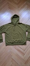Khaki mikina s kapucí, velikost M, má žmolky od praní.
