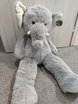 Nový jen nám tu překáží. Plyšový slon sede barvy, s cedulkou.. PC 450kc