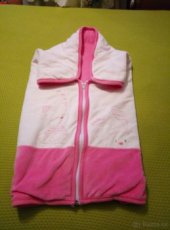 Prodám krásný nový fusak na jaro nebo podzim. Je vytelený a dole je otevřený a zpevněný druky. Lze použít taky jako přikrývka. Barva je v pastelových růžových barvách a v předu je pěkné vyšívání. Velikost 75x45 cm Zásilkovna 80,- Kč