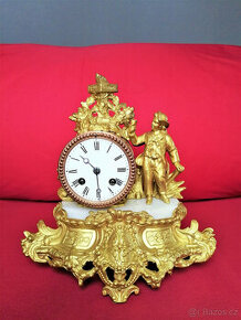 Starožitné zlacené krbové figurální hodiny, Francie 1870