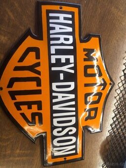 Prodám plechové cedule Harley smaltovaná šířka 27cm a výška 21cm, cena 2300Kč. Harley Parking šířka 30cm, výška 40, cena 800 Pennzoil šířka 31,50, výška 40cm, cena 700. Vyzvednout lze pouze osobně Praha 4, nebo Praha západ Jesenice.
