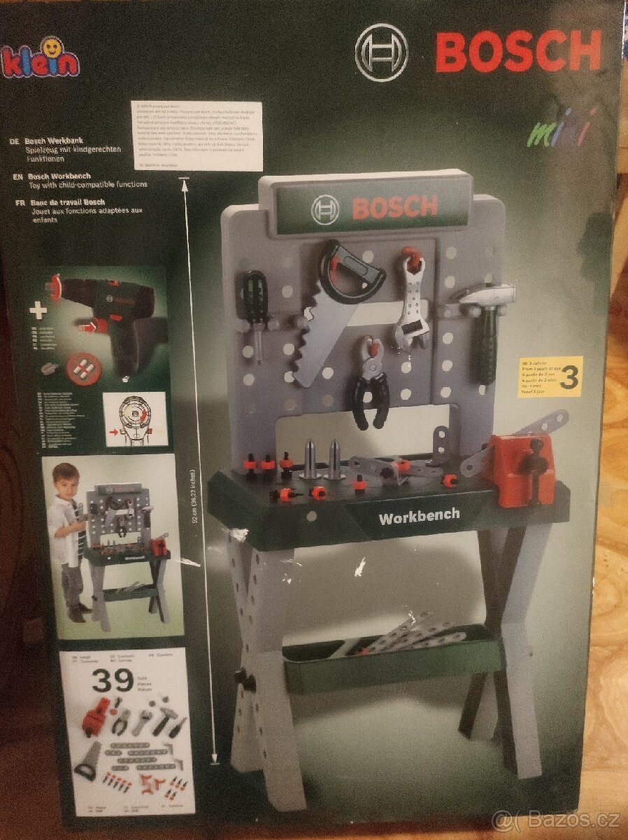 Prodám dětský ponk Bosch. Ponk je zcela nový, nerozbalený, v originálním balení. V sadě 39 ks příslušenství, výška 92 cm. Cena 590 Kč plus 139 Kč Zásilkovna. Podívejte se i na další mé inzeráty. Dětský ponk, ponk Bosch, dětské nářadí