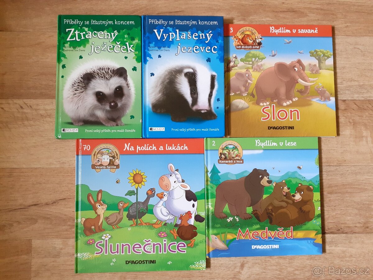 Cena: V textu. Vyplašený jezevec *PRODÁNO* Ztracený ježeček 50,- (Příběhy se šťastným koncem) Slon Medvěd Slunečnice 45,-/ks (DeAgostini) O hajném Robátkovi .. a Dášenka *PRODÁNO* Káťa a Škubánek zase spolu Kubula a Kuba Kubikula Cipískova loupežnická knížka 75,-/ks (Edice Albert) V případě zájmu, dotazů, více fotografií pište, prosím, email. Zasílám přes ČP při platbě předem, není problém poslat Balíkovnou nebo Zásilkovnou pokud si vyřídíte kód. Možné osobní předání. Rezervace jen výjimečně, děkuji za pochopení. Inzeráty platné do smazání či pokud není vyznačena rezervace.