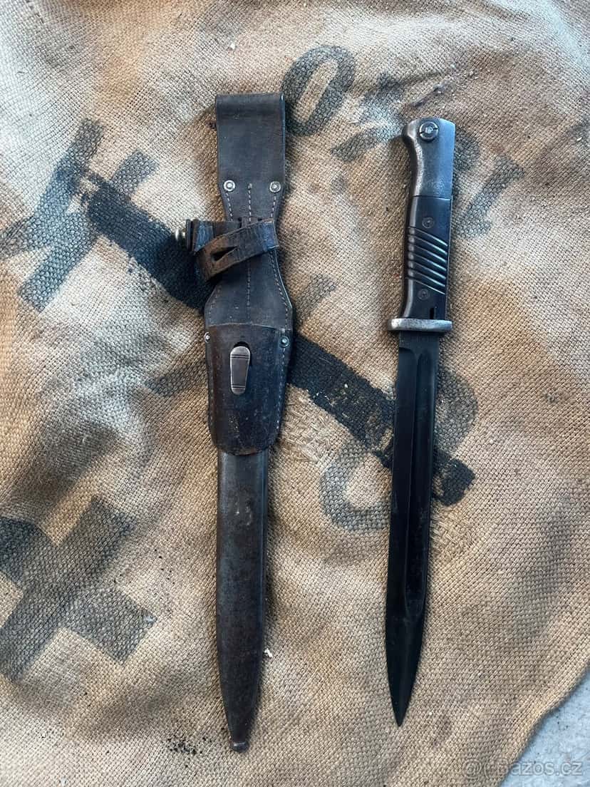 Prodám bodàk k98 mauser nebroušeny s brynýřem s waffenamty a pěknou žábou- bohužel nesčislovaný Bodák vyr. Carl eickhorn Pochva vyr. Elite diamond