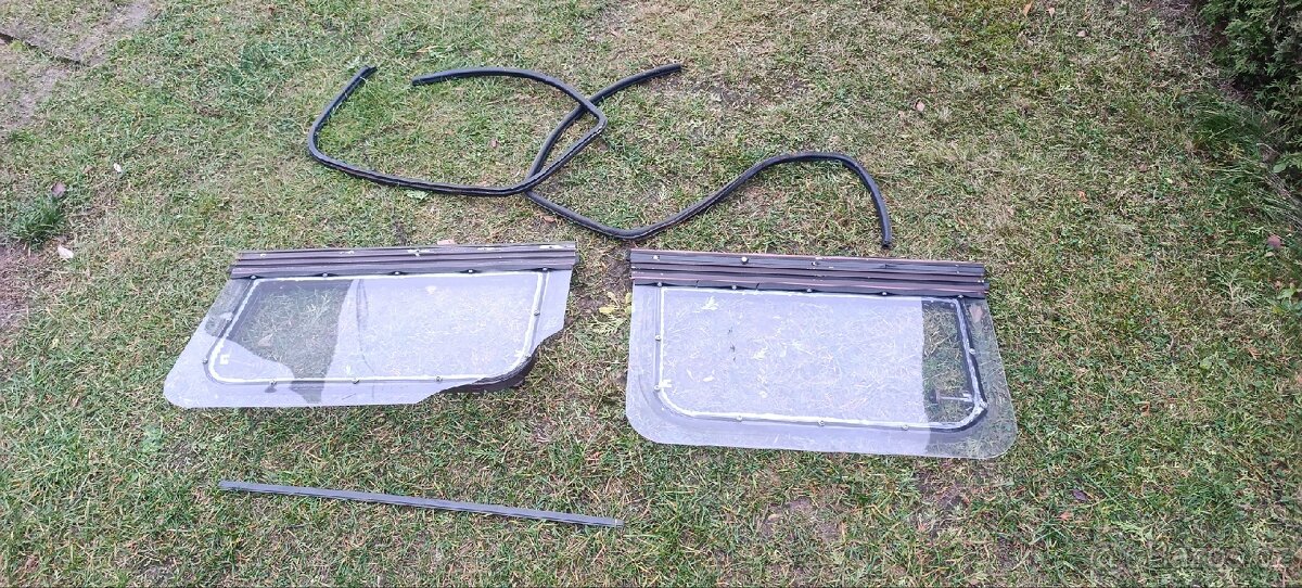 Prodám dvě retro okna na obytné auto či karavan. Byly použité jako čelní skla alkovny Pro použití stačí dát nový plexisklo či polykarbonát. Cena za komplet 200kč, nutný osobní odběr. V případě zájmu napište SMS.