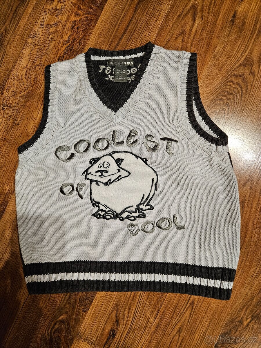 Pletená vesta HaM s našitým plyšovým medvědem.