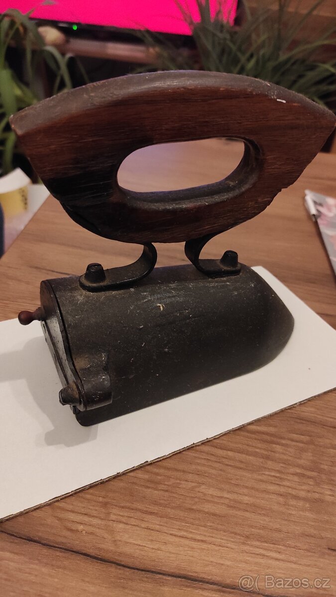 Starožitná žehlička s nahřívací cihličkou