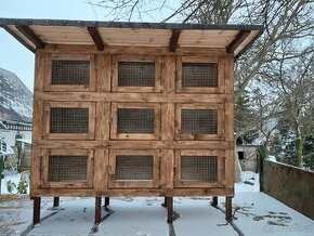 Prodám novou masivní 9.ti kotcovou králíkárnu, vyrobenou ze SUCHEHO DŘEVA!!!Podlahy spadovane dozadu pro odtok moči. Spojovací materiál konvexni hřebiky,pevnější jak vruty.Ověřené konstrukce. Rozměry kotce 80x70x50(hxšxv). S velkým přesahem střechy. Celkové rozměry 120x220x195cm(hxšxv). Možno i jiné provedení, třeba 4 či 6ti kotcove. Původní cena 16000 Kč.