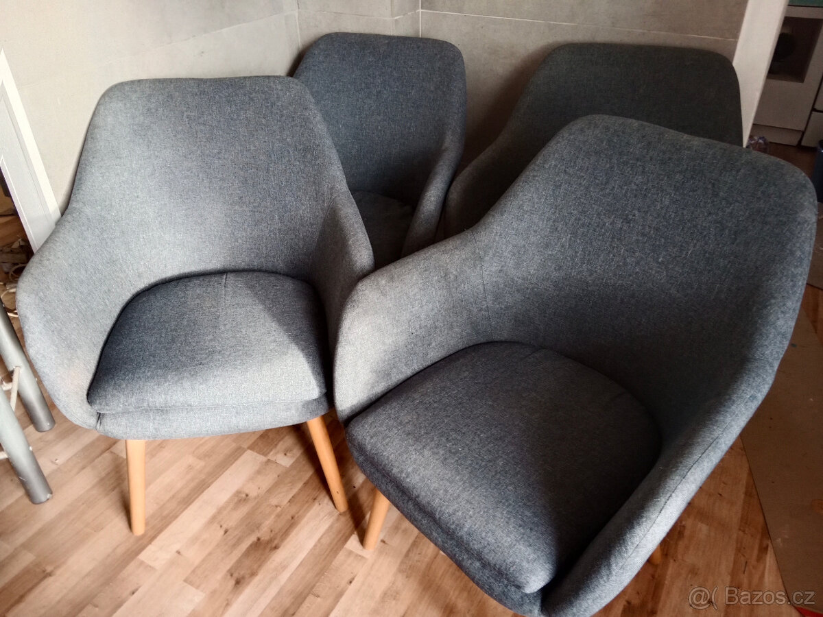 4 kusy křesel UDSBJERG s šedým potahem a bukovými nohami. Vše je v pořádku, nikde kaz, snad jen trochu vyčistit. Cena za kus 1200,- Kč (pořizovací cena 4500,-Kč)