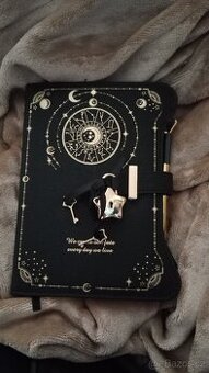 Prodám deník s propiskou na zámek, téma hvězdná obloha, nevhodný dárek, šířka 13cm, délka 20cm, tloušťka 2,5cm. Cena 230Kč
