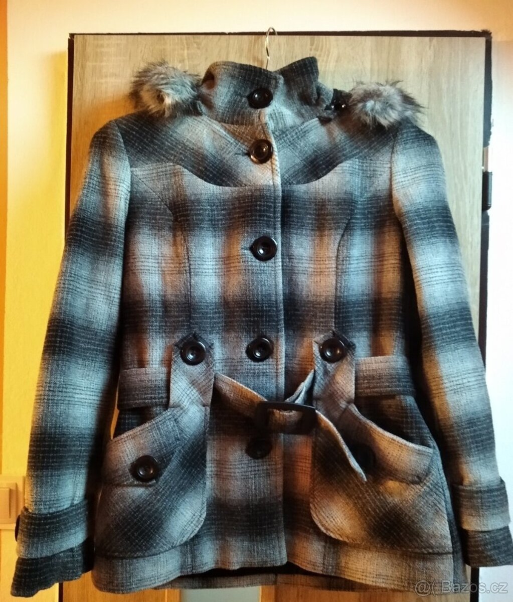 Kabátek s podšívkou. Kupovaný v Polsku vel. 38, velikost odpovídá. Délka 70, šířka v průramku 53. Lze oddělat kapuci. Pěkný střih.