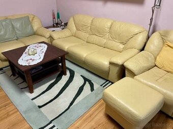 Sedací souprava 3+2+1 +taburet pravá kůže