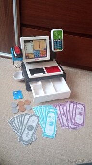 Predam detsku plne funkcnu elektronicku pokladnu so zvukmi. K dispozicii su papierove bankovky mince a platobna karta. Napajanie tuzkove baterie.